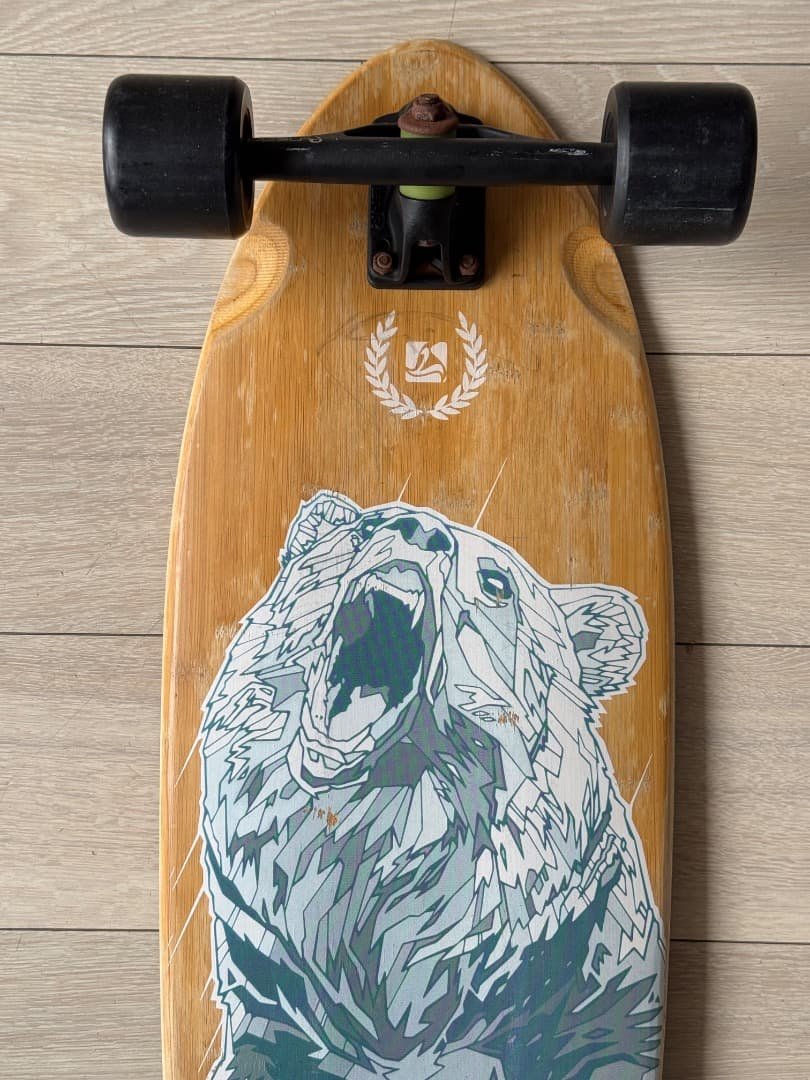 - 使用していたスケボーのホイールが削れてとても小さくなっていたこともあり、この大径ホイールに変えたらやたら滑るようになった。乗り心地も柔らかく小さな石粒も感じないほど。グリップも増したので、スラスターの調整を少し硬くしてみました。